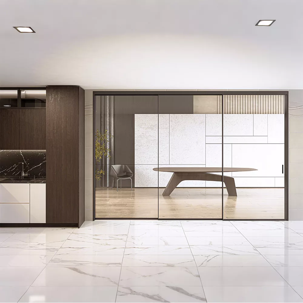 درب کشویی بسیار باریک به استفاده از قاب فوق باریک + طراحی مسیر مینیمالیستی، با لبه بسیار باریک 1.5-2 سانتی متری برای شکستن احساس سنگین درب کشویی سنتی، شفاف تر و بازتر کردن فضا اشاره دارد. چه برای گسترش ظرفیت یک آپارتمان کوچک و چه برای تقویت حس لوکس بودن در یک آپارتمان بزرگ، می تواند به تعادل کامل بین عملکرد و زیبایی شناسی در قالب "مرز نامرئی" دست یابد.